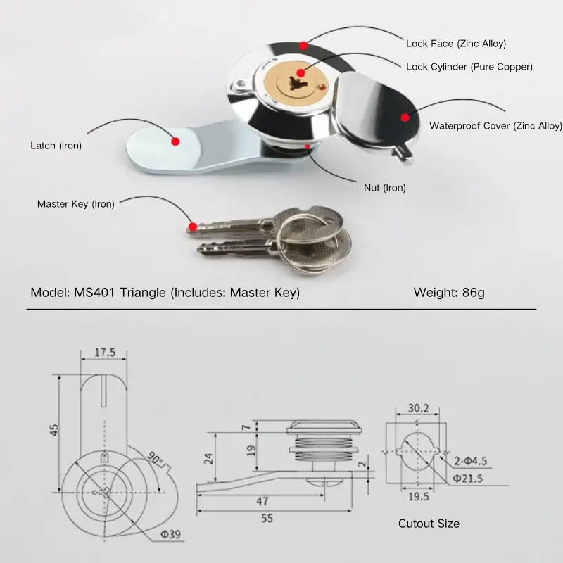 A: జలనిరోధిత కవర్ వర్షం మరియు ధూళిని సమర్థవంతంగా అడ్డుకుంటుంది, సాధారణ ఆపరేషన్ కోసం లాక్ సిలిండర్ను రక్షిస్తుంది.